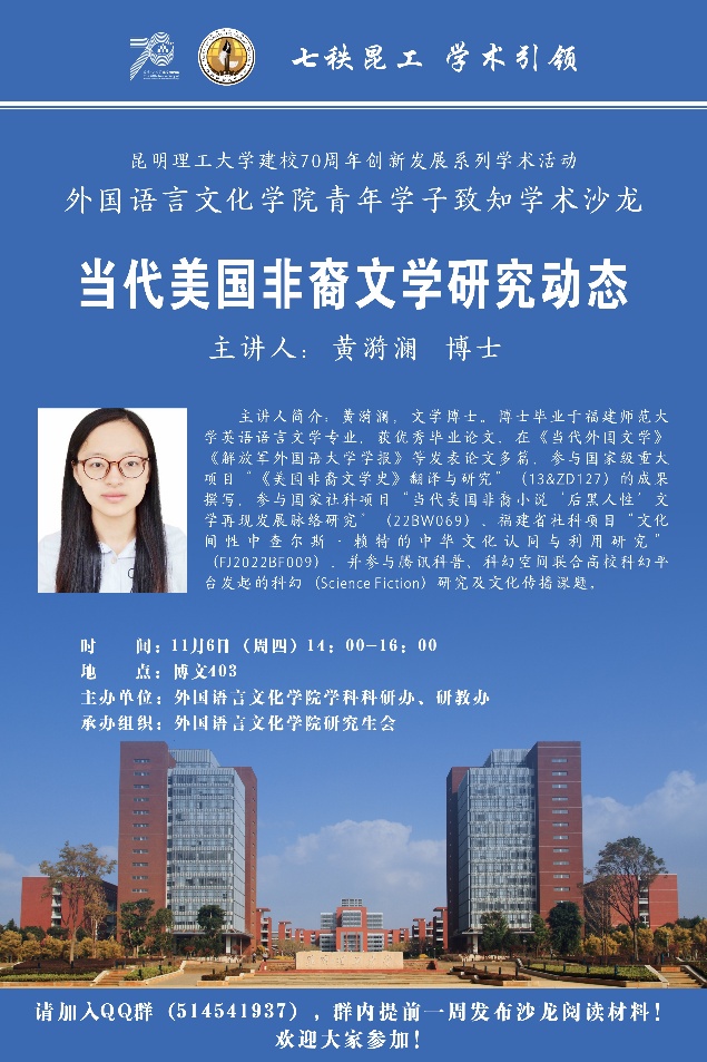 于博文楼403教室开展2025年第二期青年学子致知学术沙龙活动。本次沙龙以“美国非裔文学研究”为核心主题,特邀皇冠博彩app