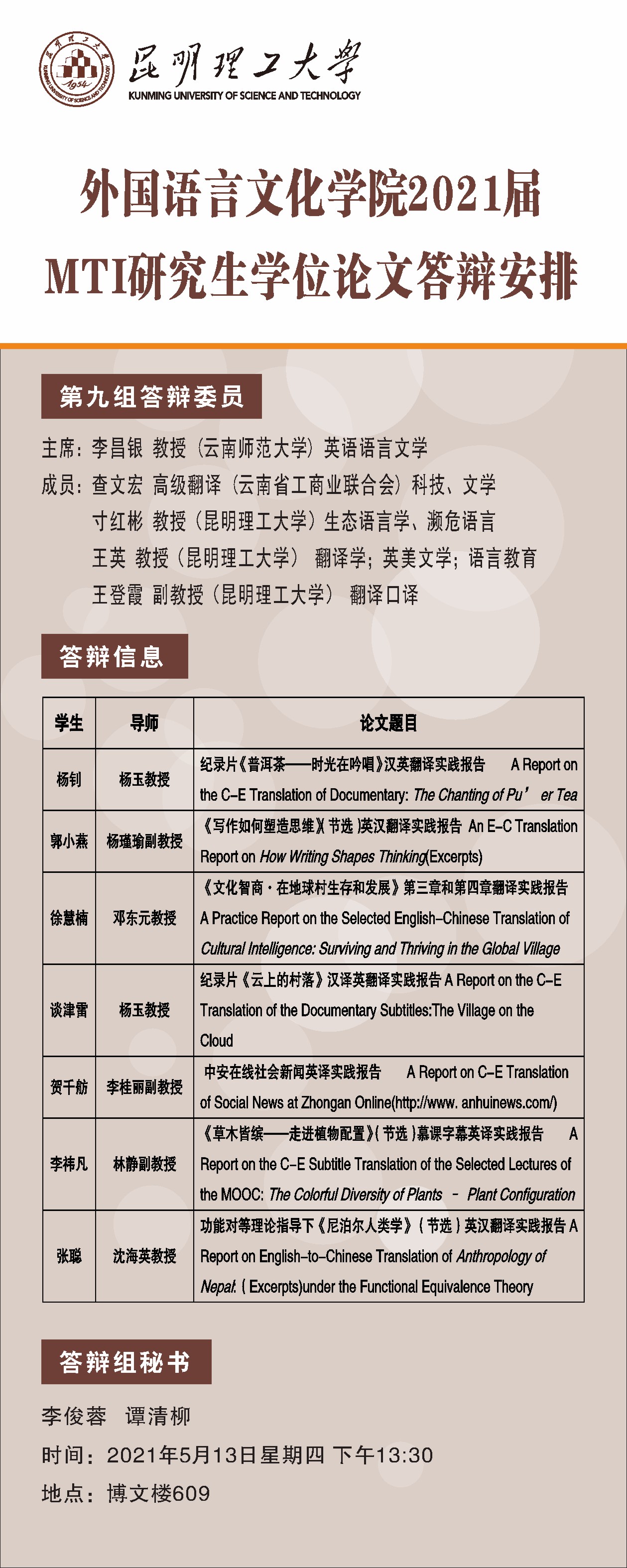 皇冠博彩app 2021届MTI研究生学位论文答辩公示(第九组)