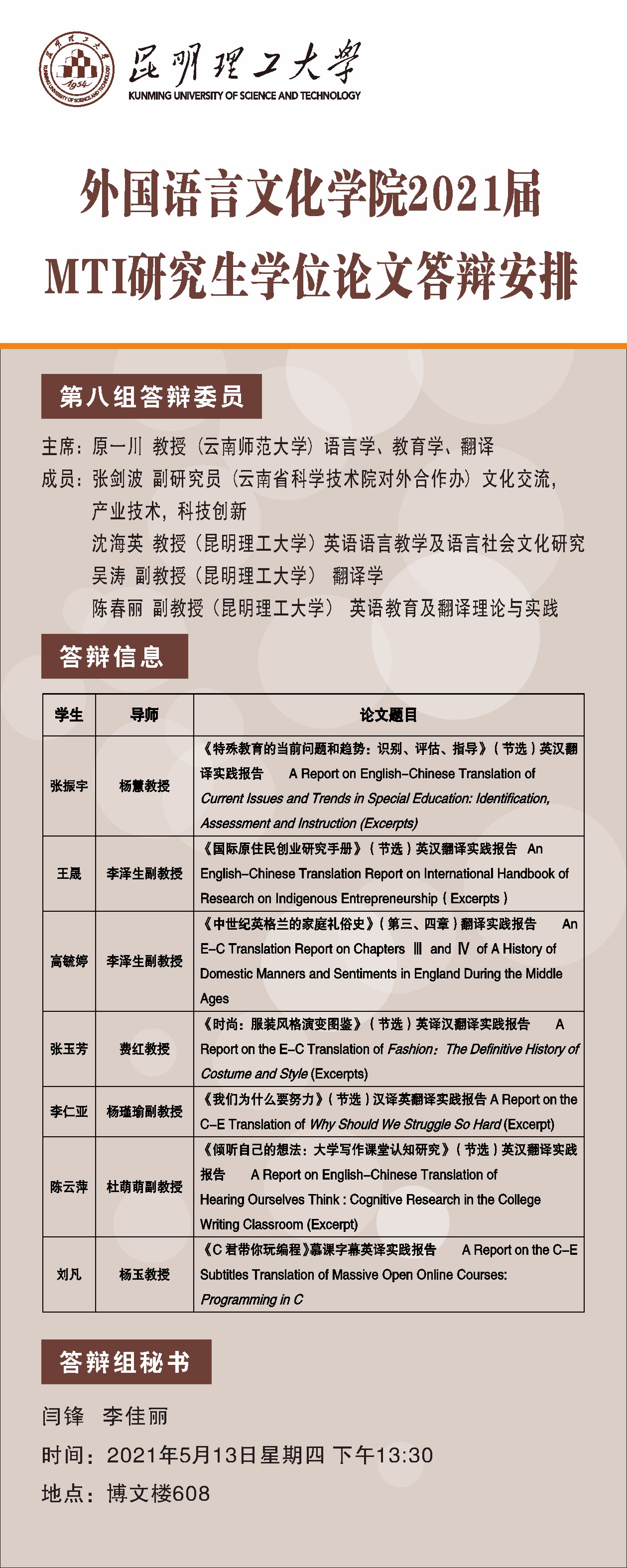 皇冠博彩app 2021届MTI研究生学位论文答辩公示(第八组)