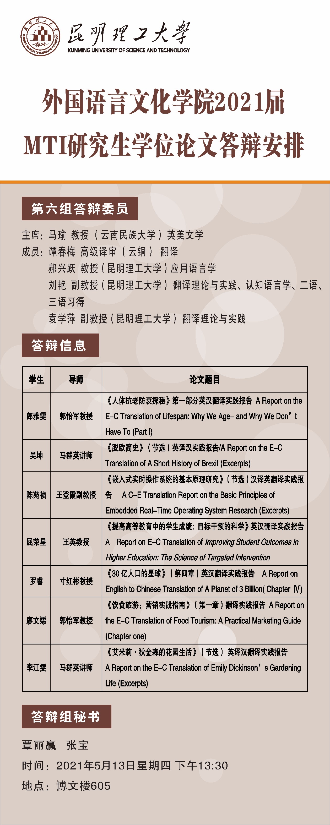 皇冠博彩app 2021届MTI研究生学位论文答辩公示(第六组)
