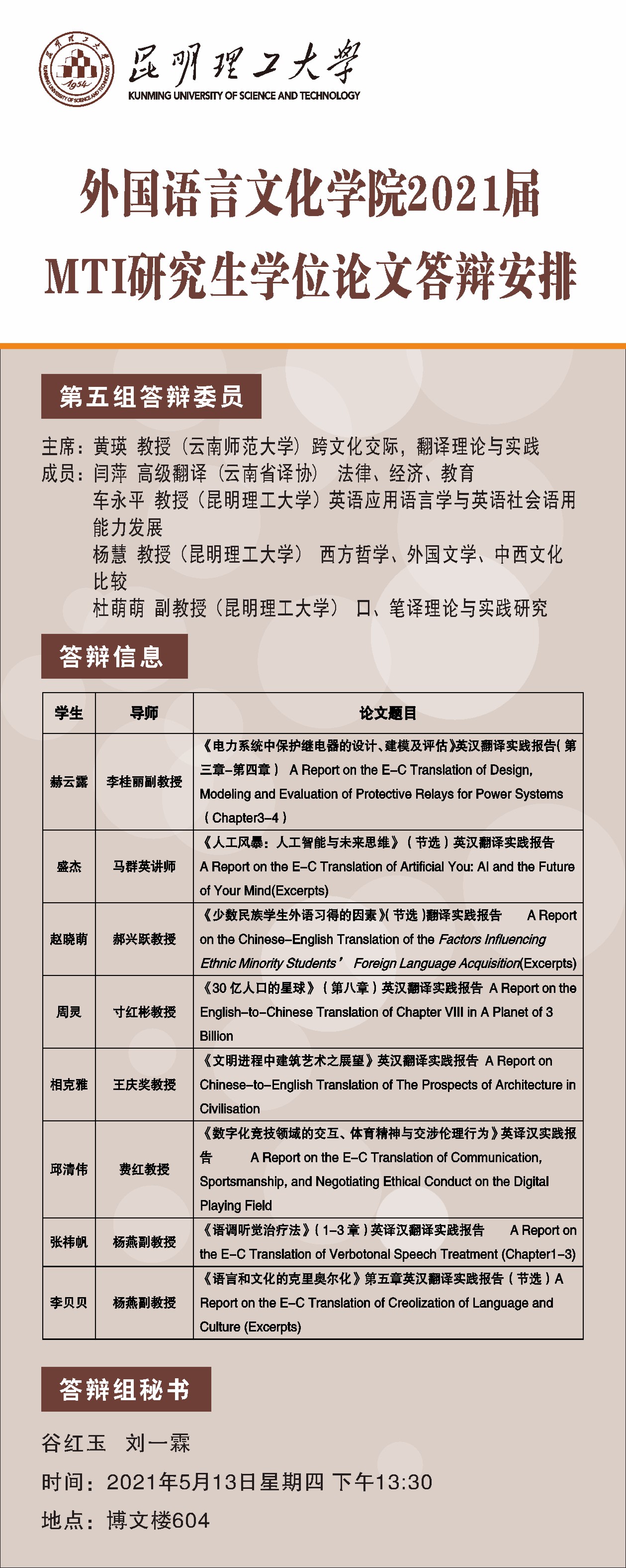 皇冠博彩app 2021届MTI研究生学位论文答辩公示(第五组)