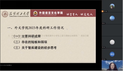 2023年度科研工作会暨2024年度国家社科基金项目申报工作推进会在线上召开。王英院长主持会议,皇冠博彩app