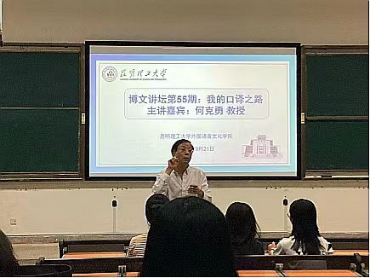何克勇教授开展题为“我的口译之路”的讲座。讲座在呈贡校区计算中心100报告厅进行,由邓东元教授主持,皇冠博彩app