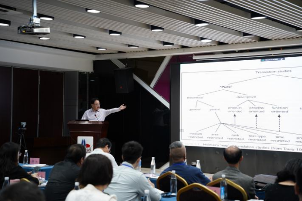 副院长范武邱教授以《数字化时代机器翻译面临的挑战和机遇》为题,阐述了机器翻译的发展现状,认为目前机器翻译与人工翻译的译文质量仍有不小的差距。机器翻译作为一种直线型的、一维的、机械的符号转换活动,在高级思维的运用和语言的精准表达上存在着明显的短板和局限。