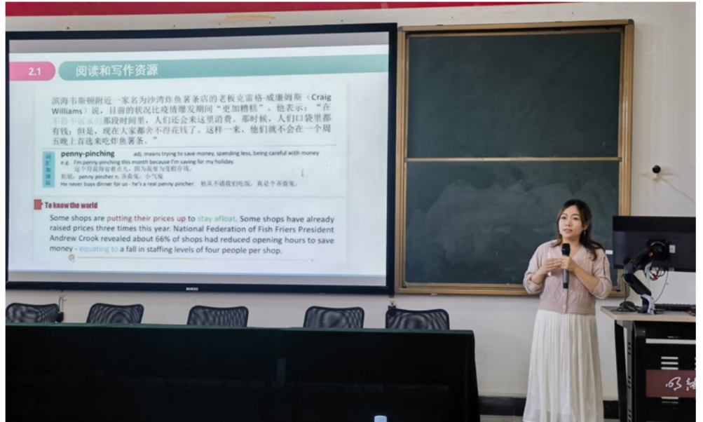 2023年度教育教学成果汇报分享会聚焦国家级一流本科课程“大学英语(一)”及国际一流课程“综合英语(一)”的建设成果,旨在树立典型、交流经验、相互学习、共同成长。“大学英语(一)”课程主讲教师孙慧副教授详细介绍了国家级一流本科课程申报书所包含的内容,申报的前期准备,以及课程团队的建设对成功获批国家级一流本科课程的重要意义,特别强调了大学英语教学过程中学生的learning by doing以及教师的growing by doing之间的相互促进、教学相长的内在联系。