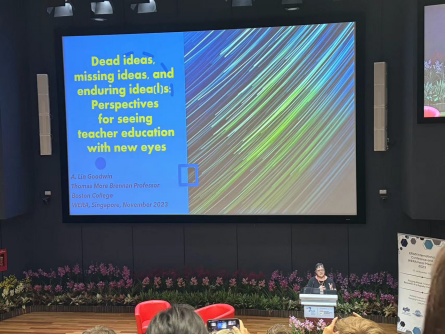 此次大会邀请了世界著名的教育专家Lin Goodwin教授,Gustavo教授, Irma Eloff 教授等分别就教师专业发展、后疫情时代的教育变化、人工智能对教师和教育领域的影响等全球共同面对的教育话题作了深入探讨。在焦点会议分会场,和方圆老师就最新论文成果“在高等教育课程改革背景下审视英语教师专业共同体的紧张关系和复杂性”作了发言,与其他学者进行了深入的交流。