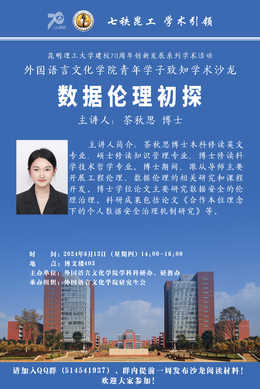 在博文楼403教室开展了2024年第五期青年学子致知学术沙龙活动。此次沙龙以“数据伦理初探”为主题,特邀皇冠博彩app下载