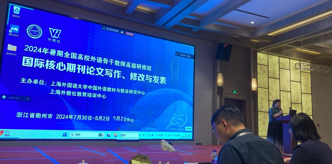 7月31日至8月1日,由上海外国语大学中国外语教材与教法研究中心和上海外教社教育培训中心主办的2024年暑期全国高校外语骨干教师研修班在浙江衢州举办,昆明理工大学外国语言文化学院和方圆博士、黄漪澜博士线下参加了此次培训班,李秋宇博士、胡权博士线上参加培训。