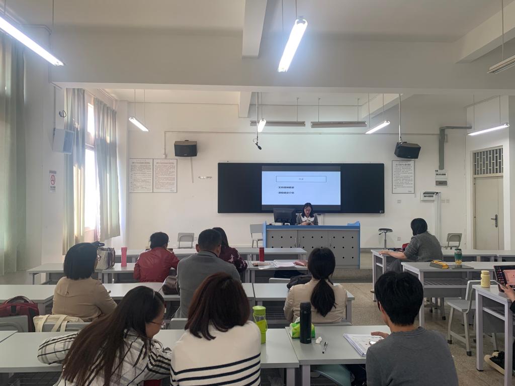 然后,由来自欧亚语教研部的曾婧老师和大家分享关于“国际一流”课程成功申报的经验和技巧。曾老师首先带领大家对新的课程质量申报手册进行解读,分析课程评价的重要原则和档次观测特征。然后,对比申报课程的实际情况和评价档次要求,分析自己的优势和劣势,并在实际教学中尽量弥补自己的不足。曾老师分别从质量评价的几个维度:教师、教材、教学、考核和学生,并结合自己的申报经验,做出细致而深入的讲解,同时和大家分享了该门课程的线上资源、课堂资源、思政建设、教学笔记等。在场的老师们都认为受益良多。最后,曾老师就老师们关心的问题介绍了申报准备的注意事项。