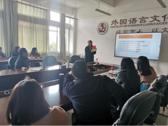 在支部书记李科的带领下,支部组建6个一流育人教师团队,每个党员团队与非党员教师结对,构建从党员到教师的协同工作机制。并对支部活动进行了大刀阔斧的创新和改革,每月定期开展党建品牌建设团队分享活动,结合专业优势,探索并分享党建带动课程思政、课程思政促进党建的实践方法、成果和心得。并与山东理工大学外语皇冠博彩app