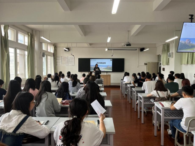 副院长马倩以“认清自我、认清专业、认清目标”为题,结合专业实际简单介绍了专业课程安排,同时也结合个人学习经历与新生分享经验,勉励新生适应大学生活、明确学习规划,提出更高的期许。