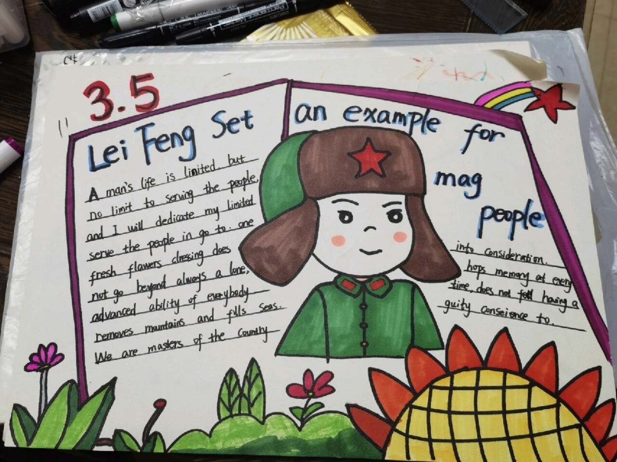 活动将语言实践与德育教育结合,既锻炼了学生的英文表达能力,也通过环保主题深化了对雷锋精神的理解。