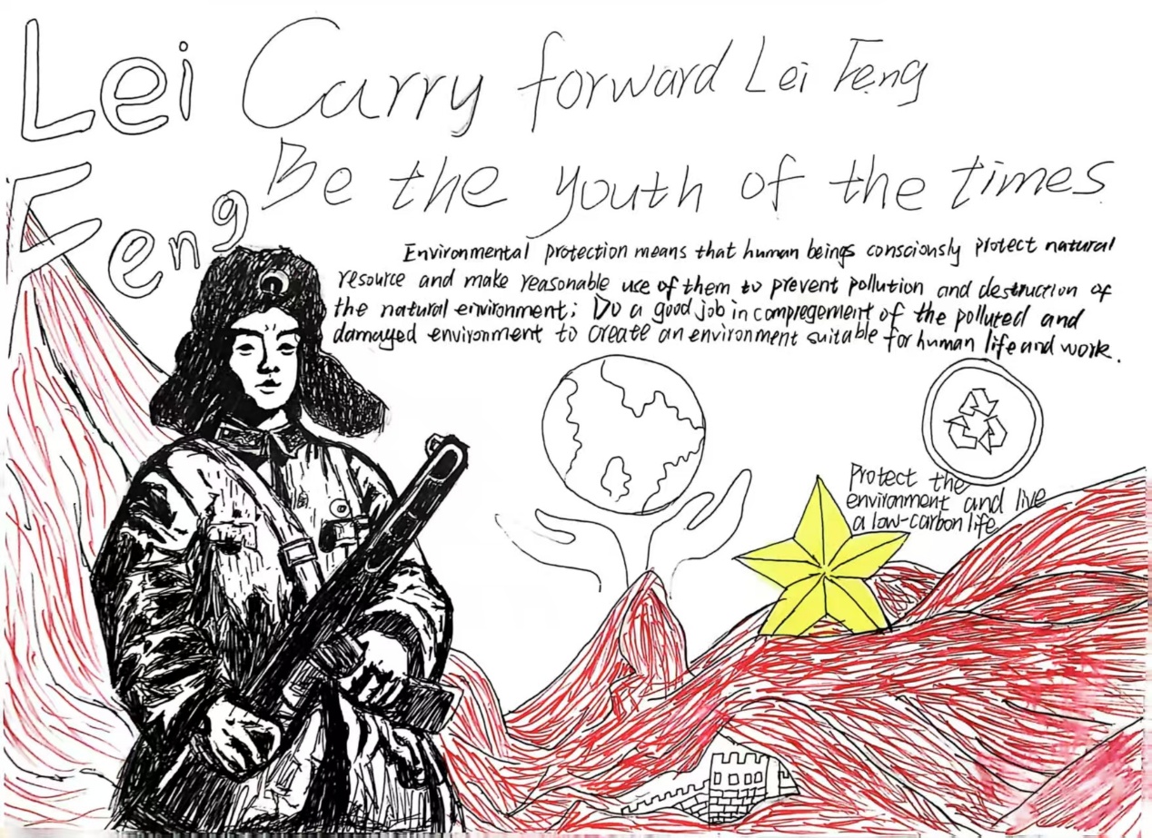 活动自2025年3月20日启动,参赛者们通过创意插画、双语标语、数据图表等形式,将雷锋精神与低碳出行、垃圾分类、生态保护等环保主题相结合。