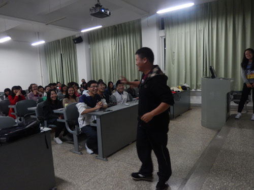 此次的英语角活动分为三个环节:击鼓传花游戏,“free talk”,听音识人游戏。三个游戏环节让大家寓教于乐,让大家对英语的兴趣增加了,这三个游戏充分调动了大家开口说英语的兴趣,锻炼了大家的英语听说能力,受到了同学们广泛的好评。游戏结束后是颁奖环节,学姐学长们为游戏获胜者颁发贴心奖品,本次活动的最后一个环节为“English chatting”,大家围在一起互相交谈,话题不限,这一个环节十分有效的发动每个人开口说英语。