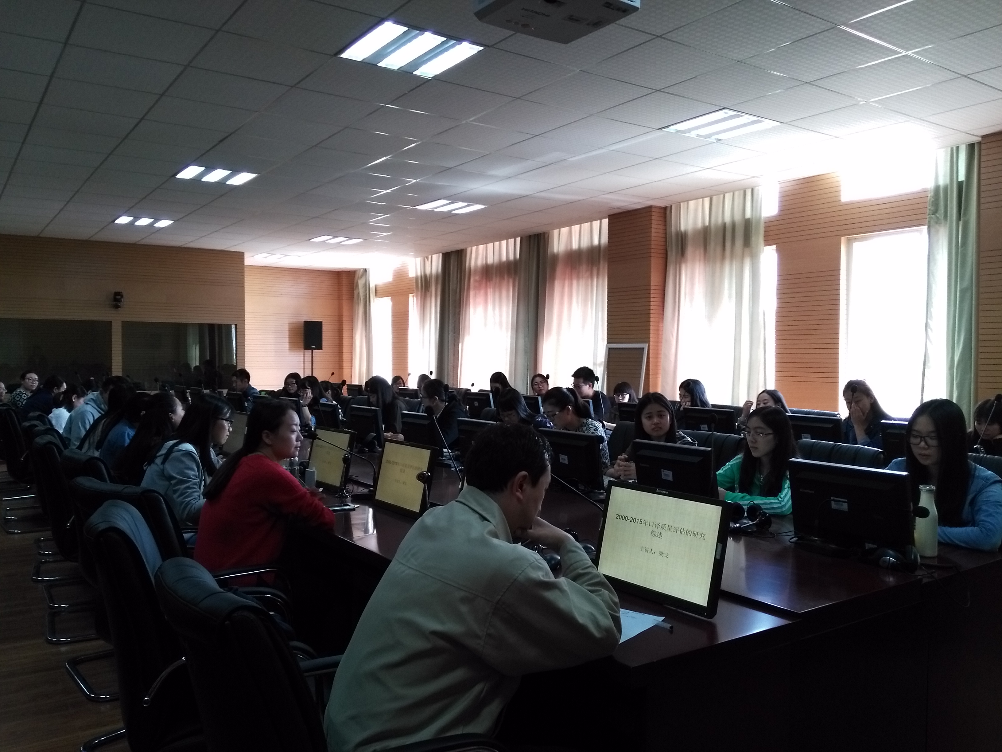 接着李莉同学以“功能主义翻译目的论下的云南少数民族菜名英译研究”为例向我们讲述了课题的研究。杨玉老师做出了点评,并提出了一些课题研究的建议,要做好一项课题首先要先学会写综述;其次在日常的生活学习中要处处留心,找到自己感兴趣的有创新性的选题;还要通过各种途径来搜集语料,如:核心期刊上收集的论文、书籍、网络、实地考察等。