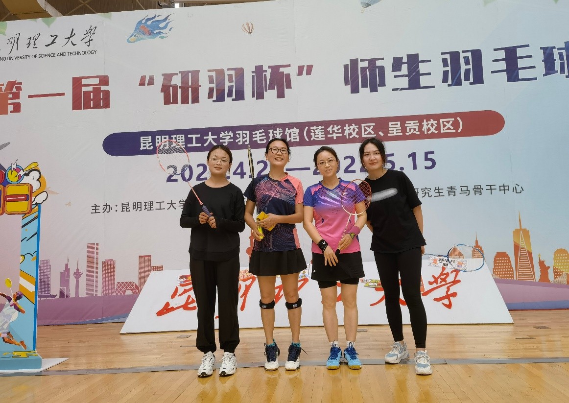 近日,皇冠博彩app下载 师生积极参与昆明理工大学第一届“研羽杯”师生羽毛球赛,在赛场上奋勇拼搏。由邓东元、黄小年老师和王娜娜、王海燕同学组成的师生二人组,在女双和混双组中与兄弟皇冠博彩app 比拼,比赛精彩纷呈,我院师生配合默契,赛出了水平,更增进了师生情谊。 为丰富研究生课外文化生活,提高研究生的身体素质,增加研究生导师与研究生之间的交流,昆明理工大学党委研究生工作部举办了第一届“研羽杯”师生羽毛球赛。我院研究生会积极响应并精心策划,为参赛队员提供有力后勤保障。